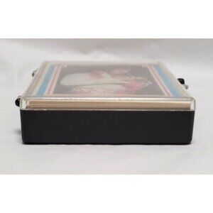 In good used condition considering the age of the cards. Cards 36, 45, 47, 53 and 61 have staining/damage to the front. We couldn't get all of these cards' staining/damage in the photo so card 47 is representative of the condition. Cards 40, 41, 59 and 66 have discoloration on the backs. Comes in plastic carrying case that has scratches and scuffs.