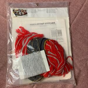 Vintage 1978 Plastic Canvas Kit Needlepoint Red Train Engine w Coal Car Joan Ray