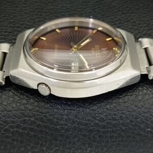 This watch has a stainless steel case in great condition with almost no flaws. The face features Gold accents on a Brown Face giving an awesome vintage look overall. It also has a date function!