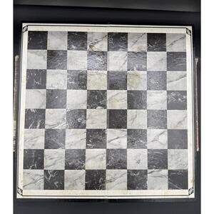 This vintage chess set from E.S. Lowe is a true gem for any collector or chess enthusiast. With a stunning black and white design, this set is perfect for adding a touch of elegance to any game. The pieces are made from high-quality plastic and feature a felted base, ensuring that they are both beautiful and durable. Box is in rough condition, showing its age. However, the set itself is in great condition!! Great value!!