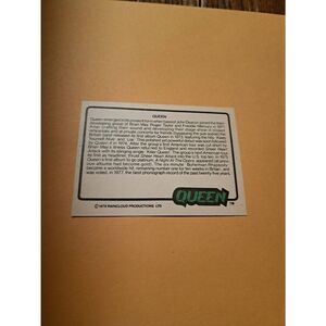 queen trading card, Queen band memorabilia, 1979 trading card, Raincloud Productions LPD, vintage music collectible, classic rock fan merch, Freddie Mercury memorabilia, Brian May, Roger Taylor, John Deacon, rock band trading card,vintage collector card, music ephemera, rare band card, fan collectible, rock history memorabilia