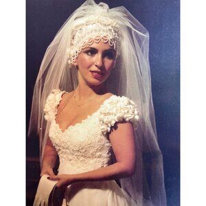 Vintage 1979 Ron LoVece Wedding Gown Cathedral Length White V Neck Cap Sleeve
