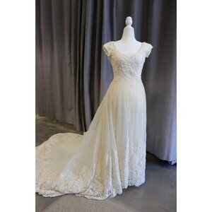 Vintage 1979 Ron LoVece Wedding Gown Cathedral Length White V Neck Cap Sleeve Size 0 Wedding Dress Stunning