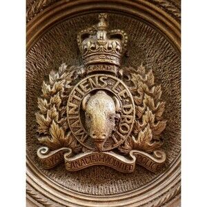 Vintage 1979 Royal Canadian Mounted Police RCMP Walnut Wood Wall Plaque 8.5" Dia