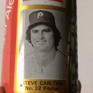 Vintage 1979 Canada Dry Ginger Ale Can featuring Phillies Baseball Pitcher Steve Carlton Number 32. There is no liquid inside. The vintage pull tab is unopened. Canada Dry Delaware Valley Bottling Company, Philadelphia, PA.