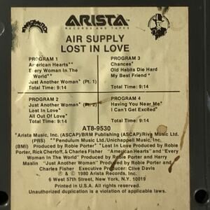 Vintage 1980 8-Track Tape - Air Supply: Lost In Love, Arista Records