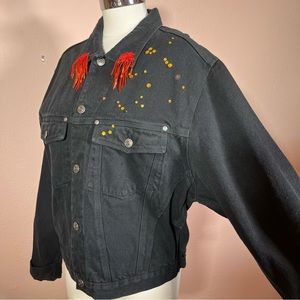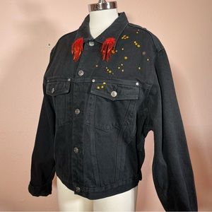 Vintage 80 90 Hand Crafted Valentine Heart oversized Jean Jacket Unique Black