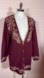 Retro Oversized Sweater in a dazzling Metallic gold and magenta knit. Designed with a deep v neckline, long sleeves and a longer length that covers the tush. Fantastic embellishment with gold embroidery and swirling gold ribbon, tiny white pearls and decorative buttons. Perfect for a festive occasion.