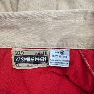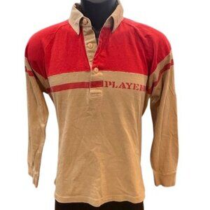 Vintage 1980 A. Smile Men Long Sleeve “Player” Polo in Tan and Red – Size XL
