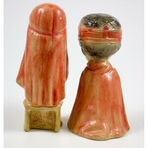 Pair of vintage 1980 Duncan Enterprises Nativity pieces. About 4" tall. Included are Mary and one of the Wise Men. They are hand painted and glazed and appear to be ceramic.