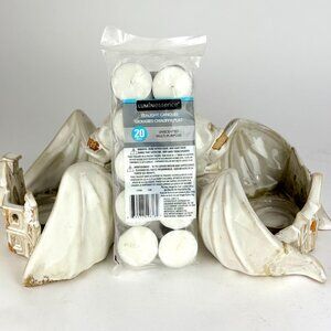 Measuring 7” long by 6” wide and 4.5” tall, these unique, collectible accents are perfect for mantle decor, Halloween tablescapes, or themed parties. Both are in like neww condition. Pack of 20 tea lights included.