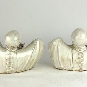 Transform your Halloween display with this set of authentic vintage ceramic tea light holders, featuring spooky skeletons clutching detailed haunted mansions. Made in the 1980s, each piece is expertly glazed with hand-painted distressed brickwork and cobweb details, creating eerie shadows and flickering light when lit.