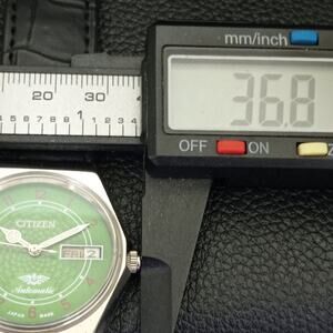 Vintage 1980 Citizen Automatic Mens Silver Watch W/daydate & Green accents