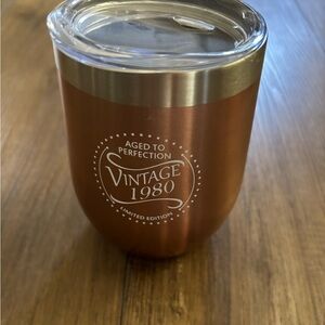 Enjoy your favorite wine in style with the Vintage 1980 Copper Wine Tumbler. This elegant tumbler features a sleek copper finish, perfect for any occasion.