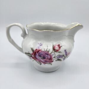 Vintage 1980 Favolina Pink & Purple Floral Gold Trim Ceramic Creamer Jar Pitcher