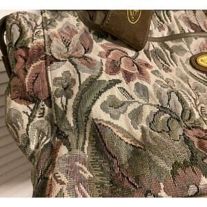 Vintage 1980 Floral Tapestry Over Night Bag/Shoulder Strap Suede Handles trim