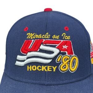 Vintage 1980 Miracle on Ice US Hockey Team Olympics Strapback Hat Blue Y2K New