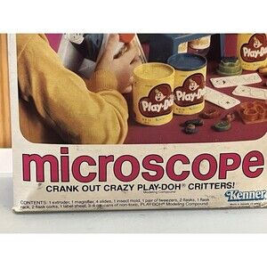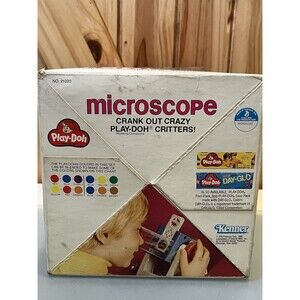 Vintage 1980 Play-Doh Microscope critters Modeling Set Kenner Science with original box. In very good condition; includes all pieces pictured in photos.