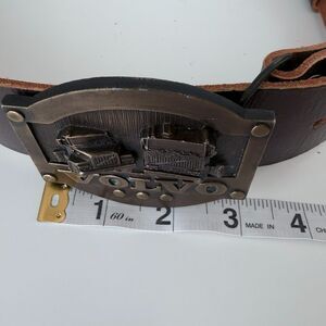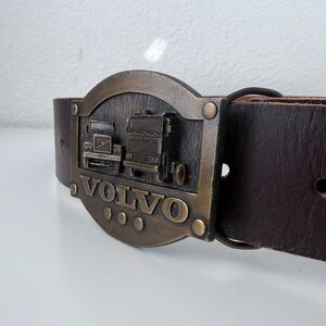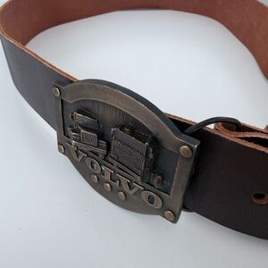 Vintage 1980 Volvo Trucks Belt Buckle with Leather Strap Tonkin Inc 3D
