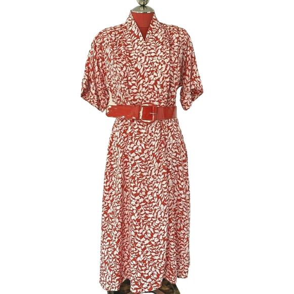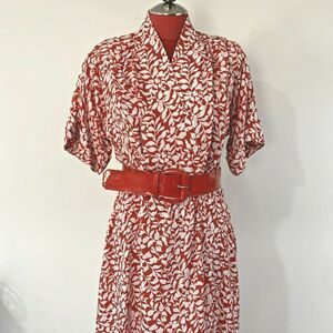 Vintage 1980 red & white true wrap dress short sleeves & patent belt retro chic
