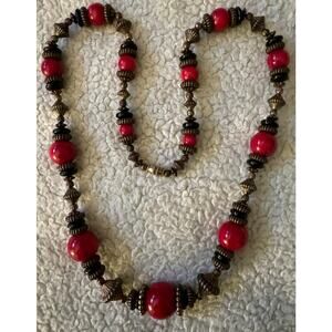 Vintage 1980-1990 Red Onyx beaded necklace.