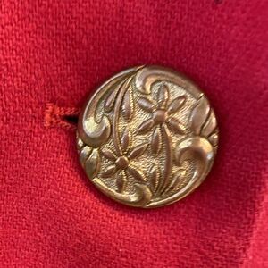 Single button closure. Single brass button at each cuff.
