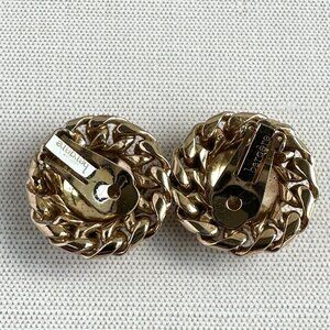 These vintage Bergere earrings feature a classic round design with a gold tone finish, adding a touch of retro style to your look.