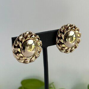 Vintage 1980s 1990s Bergere Gold Tone Round Clip-On Earrings 1 1/8" Signed Retro