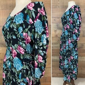 Vintage 1980’s 1990’s Breli Rayon Floral Corset Side Dress Sz Medium USA