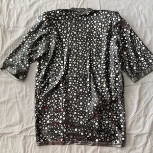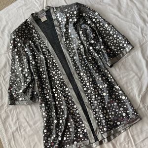 Vintage 1980s 1990s Glitzy Silver Pullover Long Duster Cardigan Disco Top Small