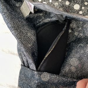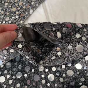This one of a kind vintage cardigan is the epitome of 1980s disco glam fashion. It’s an easy cardigan to put on top of an outfit to put it over the top. It is in like new condition; the only flaw is a little bit of inconsistencies in the silver piping (see photos) and one dark blotch on an arm hem.