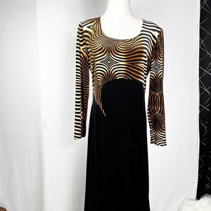 Vintage | 1980s 1990s | Joseph Ribkoff | Maxi Gold Black Animal Print | Sz 12