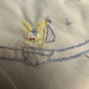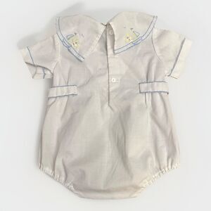 Vintage 1980s 6m Nanette Baby Boy One Piece Romper Rabbit Sailbot Embroidery