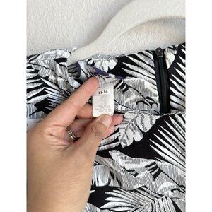Vintage 1980s APRIL RAIN Dress White Black Palm Print Dolman Long Sleeve 13-14