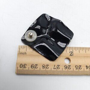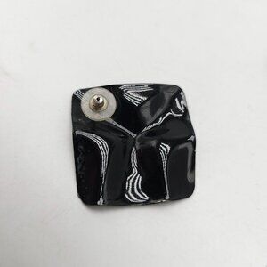 These vintage earrings from the 1980s showcase a bold abstract design in black enamel with pink and gold swirl accents, offering a unique statement piece. • Features secure post backing • Lightweight enamel construction • Measures approximately 2 inches square • Unique abstract design Post backings show slight wear, but overall condition is well-maintained. Measurements: approximately 2 inches square. Very little wear Condition: Pre-Owned Good Size: Womens 2 in Features: Post Made in Unknown