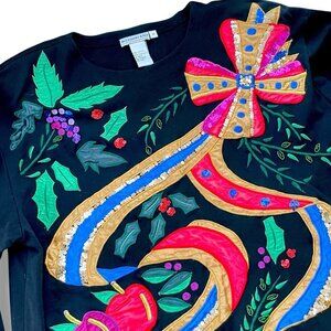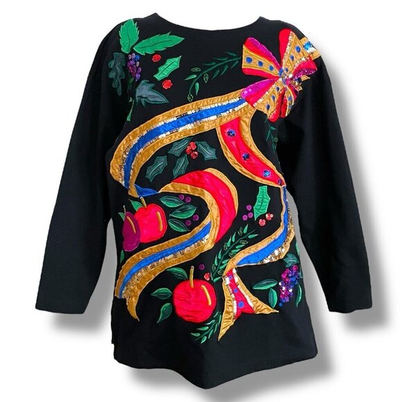 Vintage 1980s Accessory Lady Womens Top Sz Medium Black Beaded Sequins Loud
