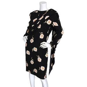 Vintage 1980's Adele Simpson Silk Dress Floral Print Draped Shoulder Size 10