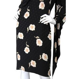 Vintage 1980's Adele Simpson Silk Dress Floral Print Draped Shoulder