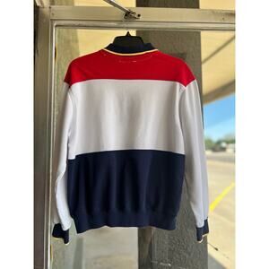 Alfred Dunner 90's tri-color collared pullover sweater with anchor emblem embroidery on the front. There are no major stains, holes, or tears. The tag says size medium.