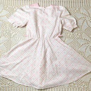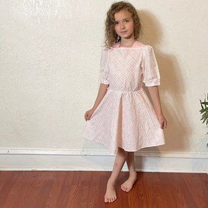 Vintage 1980s Amy Too Pink Floral Check Blouson Modest Dress Girls 7-8 Years