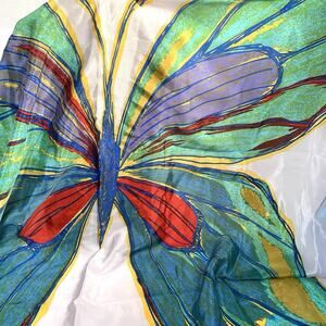 This listing is for a Vintage 1980s Anne Klein bold Butterfly Silk Scarf on a White Background. It is signed and made in Japan. It is VERY Large and exceeds my space to photograph. It is shown folded, with a 16" ruler, and I estimate it to be about 36" square, or slightly larger. It is in good condition and ready for wear.
