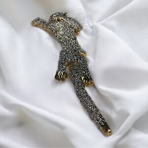 Vintage 1980s Articulated Panther Shoulder Brooch with Green Rhinestone Eyes