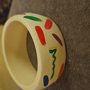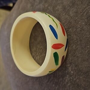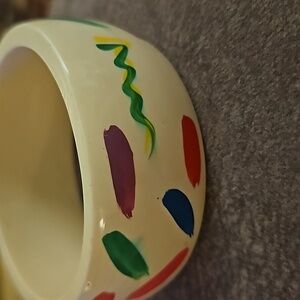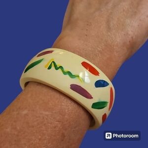 Vintage 1980s Atomic Artsy Graffiti Wide Acrylic Chunky Bangle Bracelet