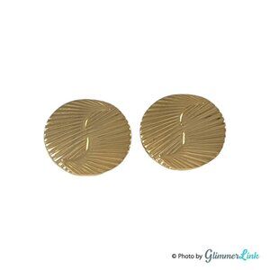 Vintage 1988 Avon "Pleated Crescent" gold tone pierced earrings featuring a ribbed circular shape.