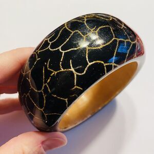 Vintage 1980's Bangle Bracelet - Chunky Hard Plastic that is wood look acrylic with color variations and faux crazing to look like wooden bark. Unique fashion jewelry - no hallmarks - very chic vibes. Gently worn - no damage or flaws - just stunning!