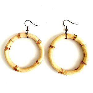 Light weight circular bamboo hoop boho pierced earrings as pictured