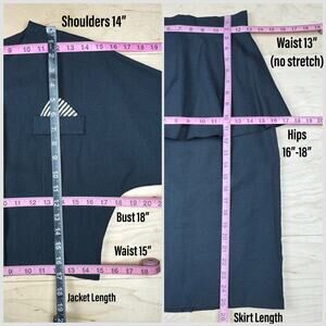 Jacket is tagged size 11/12 and the skirt is tagged size 10 - Please refer to measurements in photos for accurate fit and note they do not stretch
