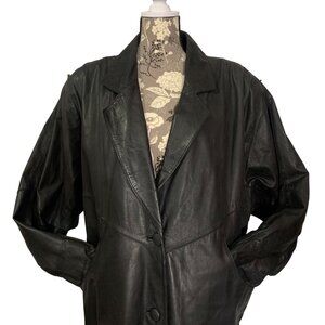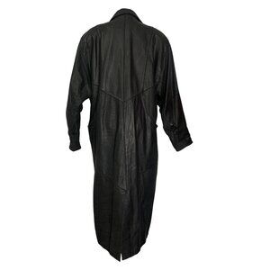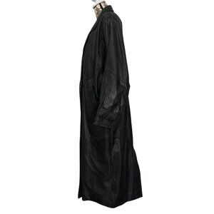 Vintage 1980s Black Leather Trench Coat Duster Womens Size Large By G3, GIII