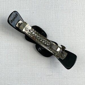 This retro black barrette features a chunky bow design, making it both functional and stylish—a durable accessory for securing hair all day.
