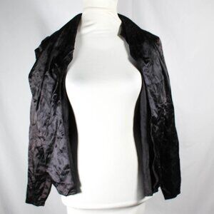 Vintage 1980s Black Sateen Floral Tuxedo Style Jacket Small Gothic Vampire